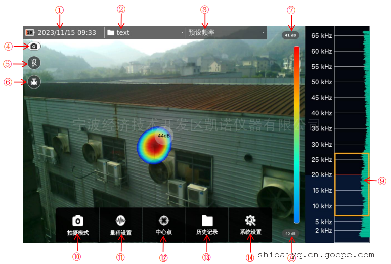 ⑦显示当前检测热力图中*大(红色部分)声压级;