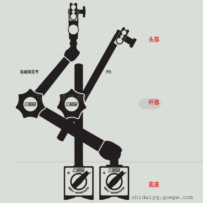 NOGA球关节机械万向表架是:中央锁紧机构;