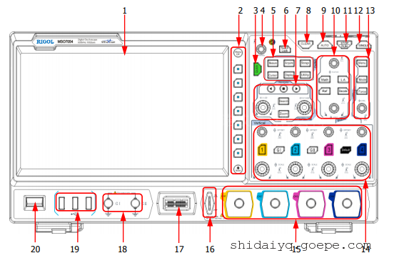 MSO7000系列示波器前面板各按键说明: 1.电容触摸屏