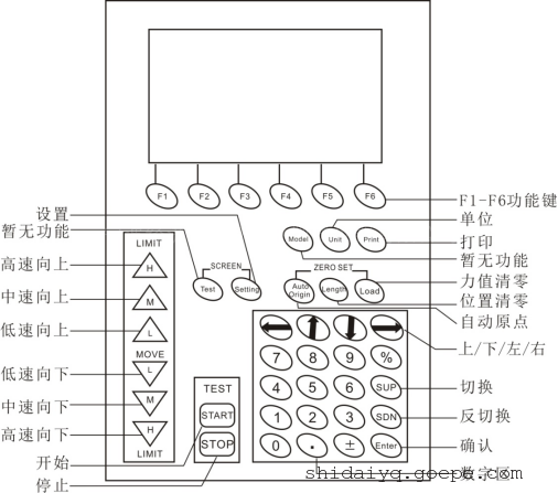 8.力值清零:按下此键,位移数值清零。力值清零必须在电机处于停止的状态才有效。