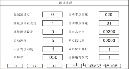 1.加减速设定:加减速设定指测量时上压块的加速度设置,设置为0时,即为关闭状态;设置为1时,为开启状态。加速度设定与测量点停止设定是冲突的,只在测量点停止设定设置为0的情况下,加减速设定是有效的。