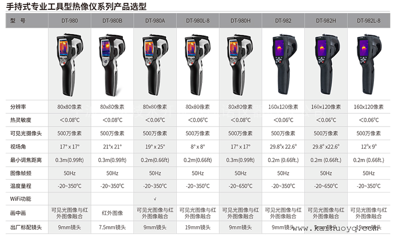 CEM手持式DT98系列工具型热像仪系列产品选型对比: