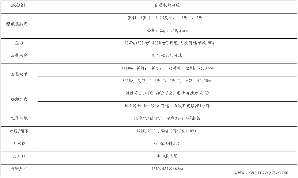 品牌:凯诺 型号:ixiang-5 加工定制:是 外形尺寸:530×485×463 mm 重量:10 ㎏ 用途:镶嵌试样 自动电动液压镶嵌机ixiang-5ixiang-5自动电动液压镶嵌机设备特性: