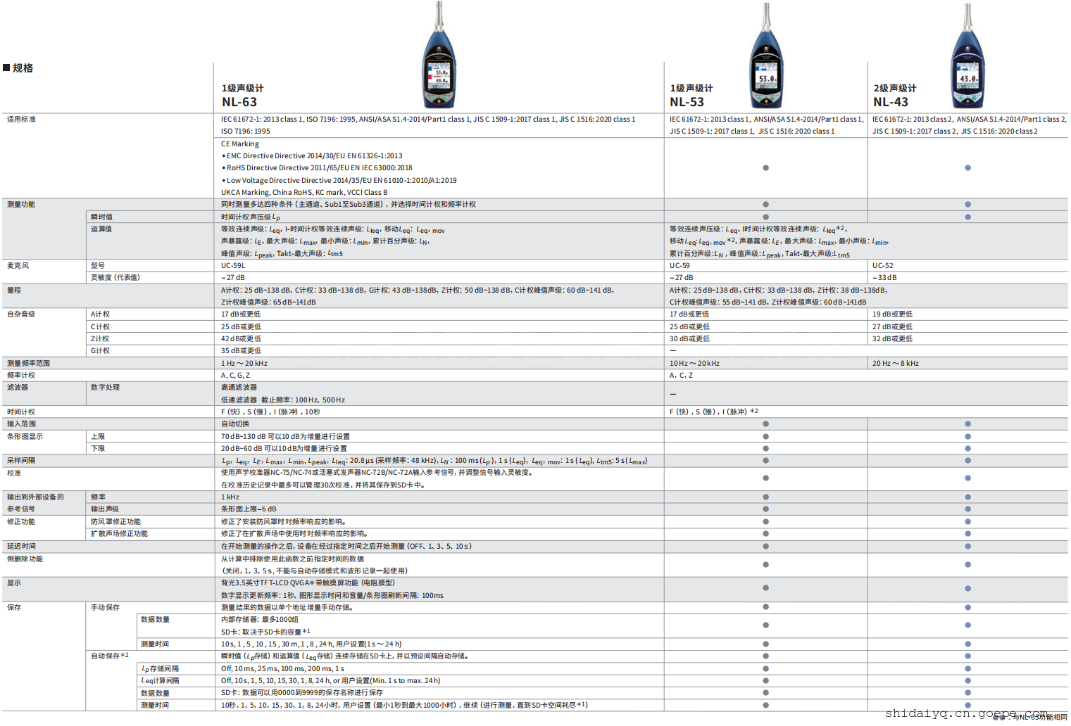 品牌:理音 型号:NL-43 加工定制:否 类型:数字式 测量范围:A25 dB~138 dB 测量精度:2级 工作温度:-10~50 ℃ 分辨率:标准 尺寸:258*83.5*3435 mm 重量:0.4 kg 普通声级计NL‑43型符合声级计相关法律法规中的测量法、IEC、JIS、ANSI/ASA标准。NL‑43 的可测量频率范围为 20 Hz 至 8 kHz,由1/2英寸麦克风、前置放大器和主机组成,麦克风和前置放大器可以从主机上拆下独立使用。屏幕在可视性、显示语言切换以及按键操作方面,带来直观的用户界面感受,不会在必要的设置中出现任何错误。