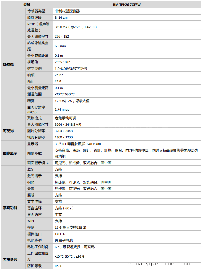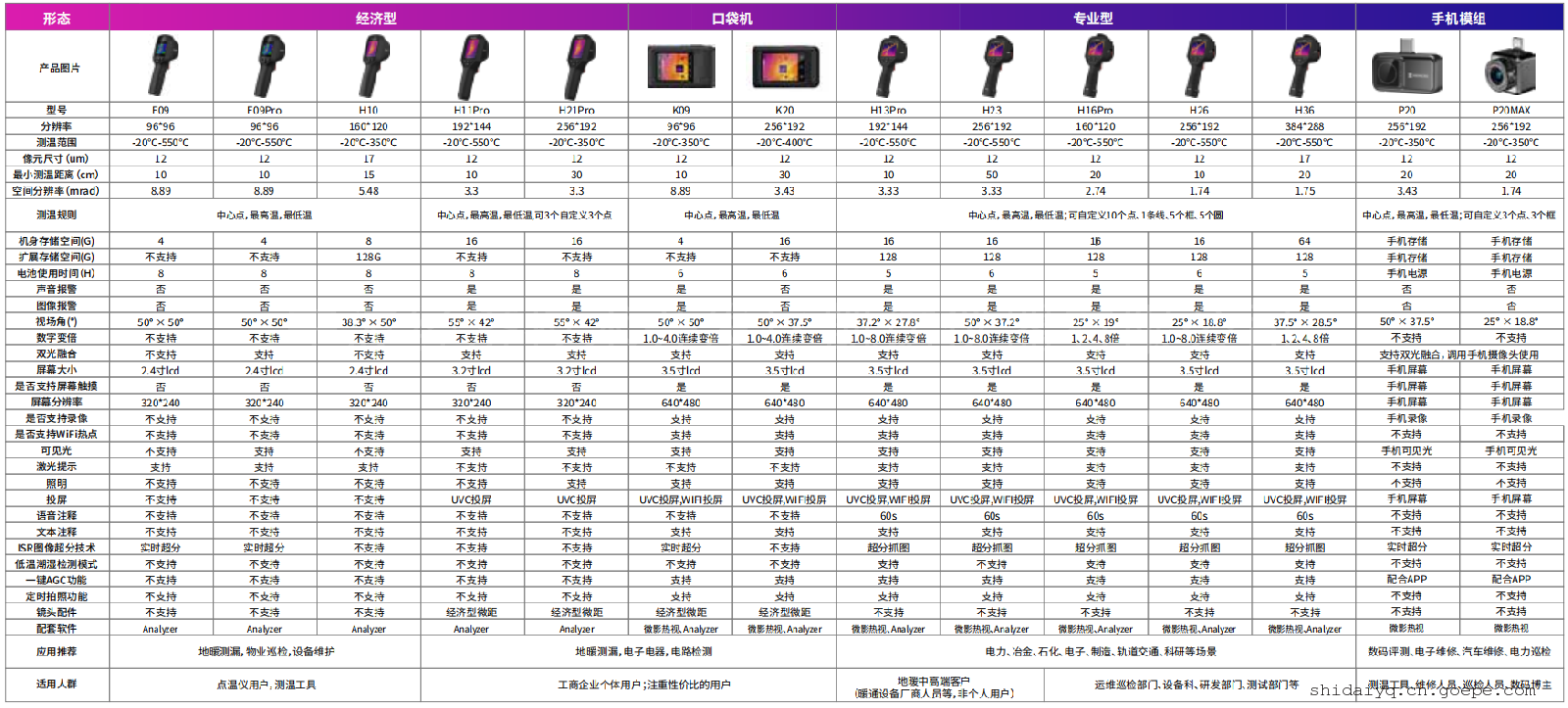 手持测温热像仪系列主要参数对比: