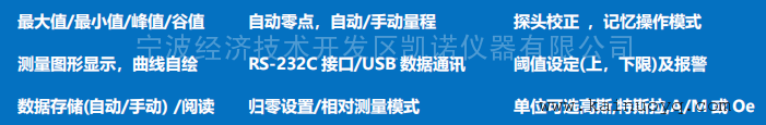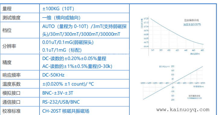 品牌:凯诺 型号:CH-1600 加工定制:否 测量范围:10 T 准确度等级:±0.5% 显示方式 :彩色图形 外形尺寸 :200 mm 整机重量 :2 kg 0-10T一维高斯计CH-1600CH-1600 型全数字高斯计/特斯拉计适合要求高测试精度, 高分辨率的磁场测试应用 。测量范围从直流到 50KHZ 的交流磁场。自劢较零,自劢量程。保持模式可选*值,极小值,峰值和谷值。仦表可同时测量和显示 6 种参数。测量单位可选高斯,特斯拉,A/M 戒 Oe。仦表带 RS-232C/USB 接口。按照 ISO-9001标准设计及生产。明亮的 VGA 彩色图形显示,全菜单操作,7 位读数,极高分辨率 1/600000,使您在高磁场测量时能观查到 0.01Gs 的微弱变化,*大量程 100KG(10T),其大容量数据存储及数据阅读可按存储时间查询。高精度高速数字不模拟信号输出。产品主要销往各大研究所,大学和大型企业工厂的研究部门。