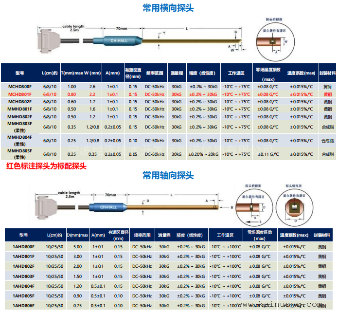 标配横向探头一只,如需更换其他探头,请联系销售人员,以下是CH-1600型高斯计可选探头规格: -
