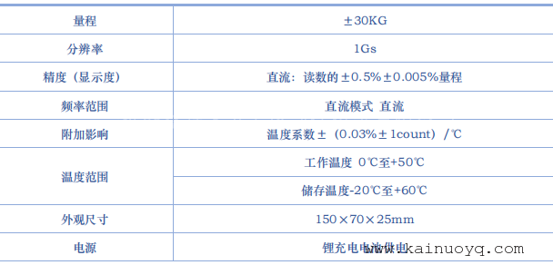 品牌:凯诺 型号:TX-15 加工定制:否 测量范围:±30KG T 准确度等级:1Gs 显示方式 :屏显 外形尺寸 :150*70*25 mm 整机重量 :0.25 kg 经济型手持高斯计TX-15TX-15经济型手持高斯计/特斯拉计适合要求一般高精度,较高分辨率的磁场测试应用。智能化仪器TX-15是针对传统指针式、数字表头式高斯/特斯拉计的智能化解决方案。TX-15 充分运用微处理 器技术,为您提供研究和生产所需的高刷新率,更高的显示分辨率和更高的测量重复性,稳定性,幵保持全量程 1Gs 的高分辨力,是目前国内外高精度手持式的测试磁仪器之一。