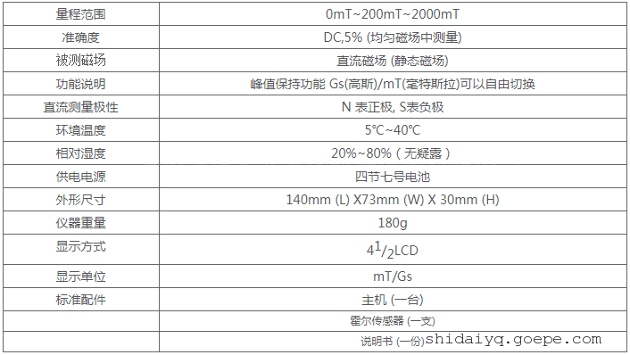 品牌:兰泰 型号:GS100D 加工定制:否 测量范围:0mT~200mT~2000mT T 准确度等级:5% 显示方式 :数显 外形尺寸 :140*73*30 mm 整机重量 :180g kg -