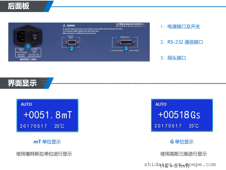 测量范围:3 T 准确度等级:0.1mT  显示方式 :液晶屏幕
