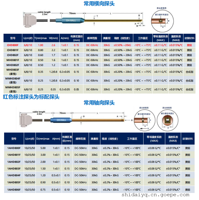 可选配探头规格如下: