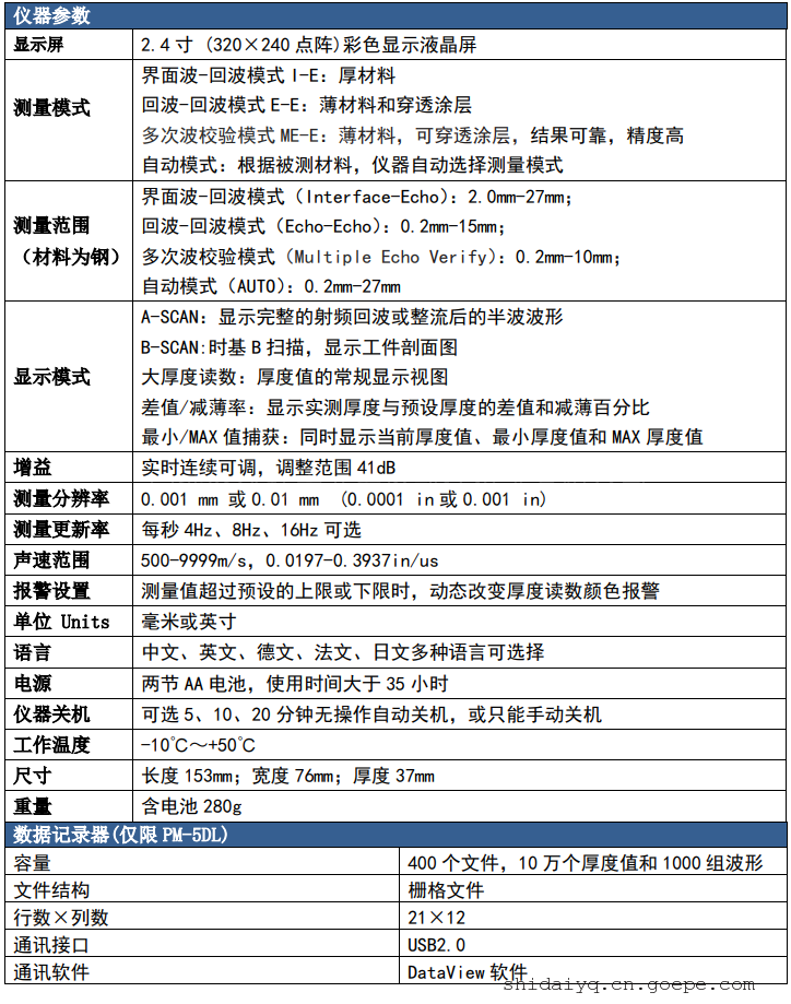 漆层超薄壁测厚仪PM-5DL型规格参数: