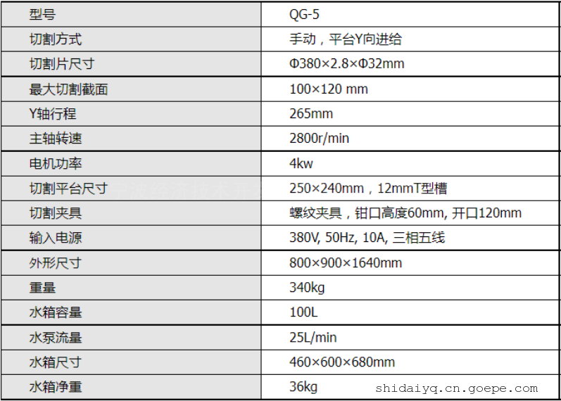 金相试样切割机QG-5规格参数: 金相试样切割机QG-5型适用于100mm直径以内的棒材切割。1. 超大可视观察窗
